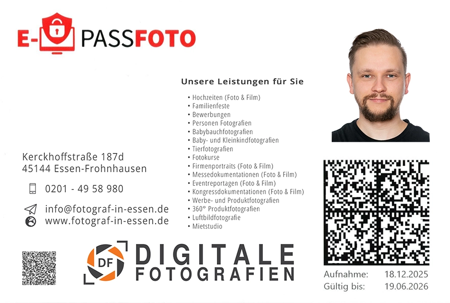 Biometrische Ausweisfotos bei Ihnen Zuhause (auch E-Passfoto)